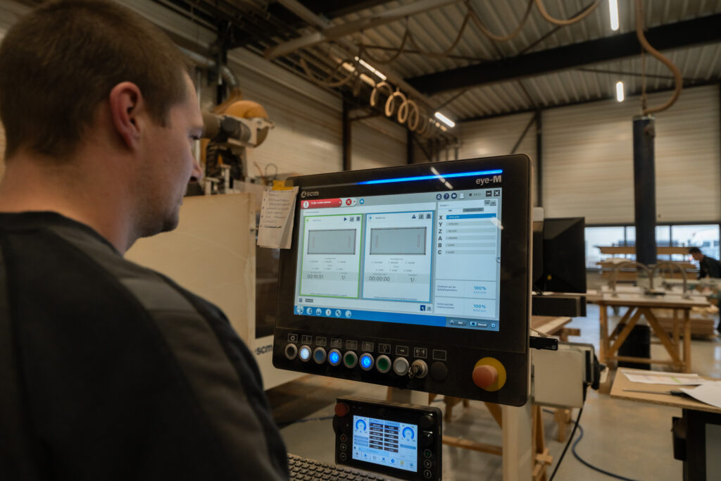 Nadat het project volledig is geprogrammeerd worden de meet- / freesbestanden in onze CNC machines ingelezen, zodat daarna het bewerken van de deuren kan beginnen.